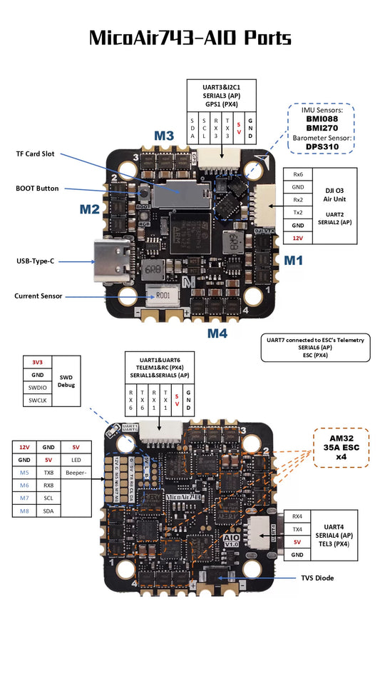MicoAir H743 Flight Controller supports Ardupilot/PX4/INAV/Betaflight